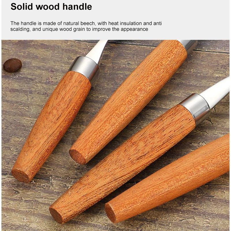 1. Ручка изготовлена из натурального бука, с теплоизоляцией и анти-обжиганием, а также уникального деревянного зерна для улучшения внешнего вида.
