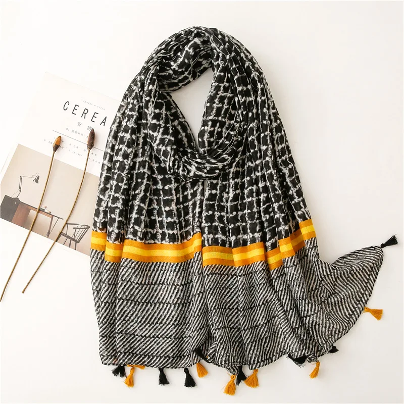 Новый модный осенний женский роскошный винтажный шарф из хлопка и льна с цветком кешью, хлопковый вискозный Широкий стандартный хиджаб