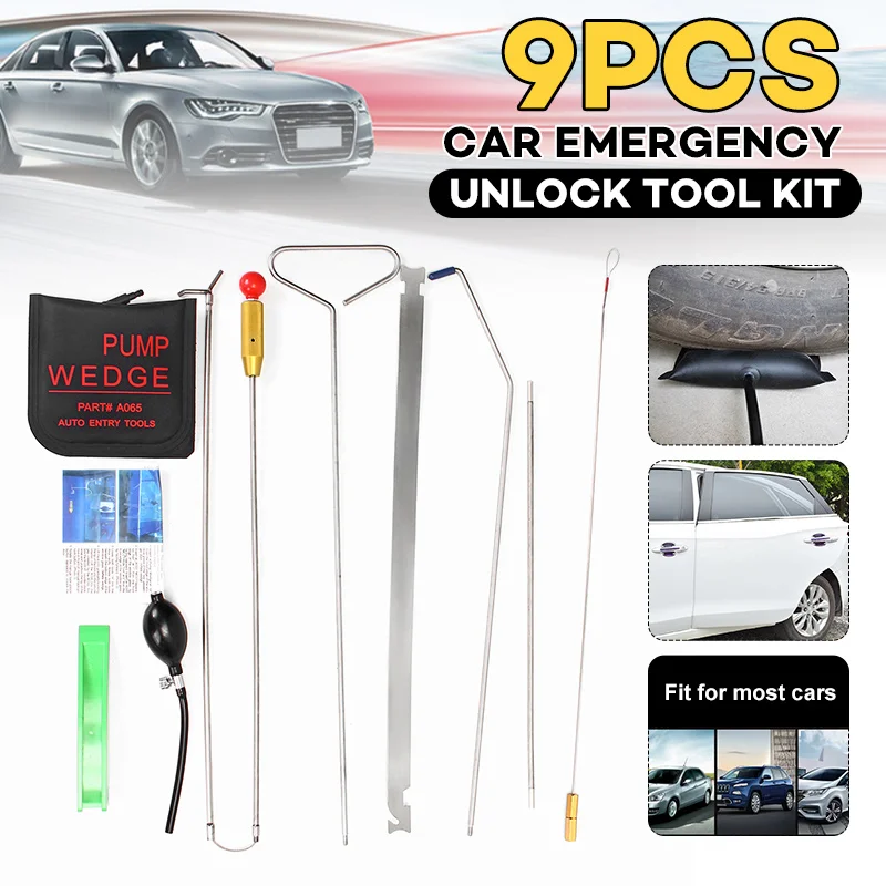 Особенности:* Универсальный ключ для автомобильной двери, аварийный открывающийся инструмент для разблокировки, набор воздушных насосов.* Высококачественный набор инструментов для ремонта для открытия дверей большинства транспортных средств.* Подходит для большинства европейских и японских автомобилей.Спецификация:-Вес: 983 г-Количество: 9 шт.-Материал: сталь + железо + пластик + тканьНа открытом воздухе на танкетке Размеры: 16*16,5 смПримечания:1. Используйте тонкую штангу/широкую штангу для сгибания инструмента внутри или снаружи: «in» означает СГИБ нижнего конца стержня к автомобилю; "Out" означает изгиб нижнего конца бара вдали от автомобиля.2. Работает газовый колпачок инструмент в и из замка несколько раз, перемещать его вверх и вниз постоянно, как вы поворачиваете, двойные концы для удобства.Посылка:1X Аварийный набор инструментов для разблокировки автомобиля