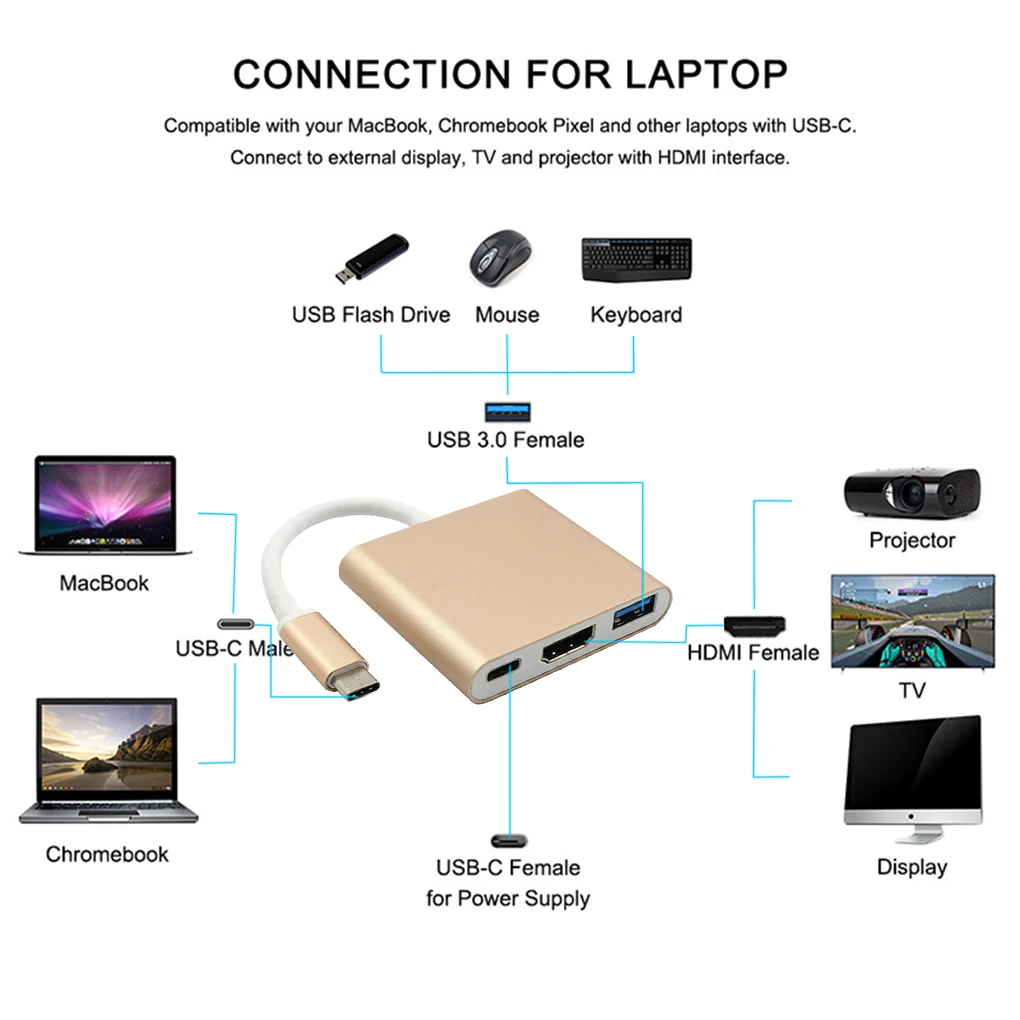 Переходник usb-cUSB HDMI, USB 3,1, 3 в 1, концентратор горячая распродажа