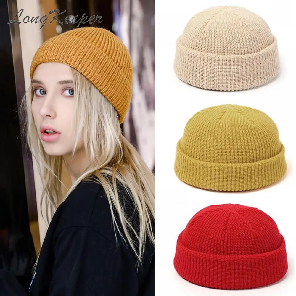 Вязаная шапка для женщин и мужчин, шапки, осенние шапки, зимние однотонные теплые шапки, мягкие шапки в стиле хип-хоп Kn...