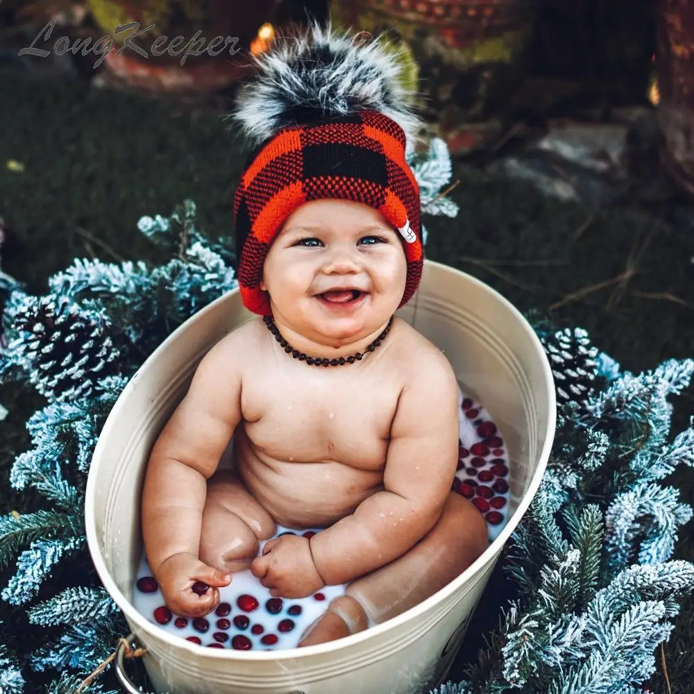 Шапка для маленьких девочек, Рождественская Лыжная шапочка в клетку...