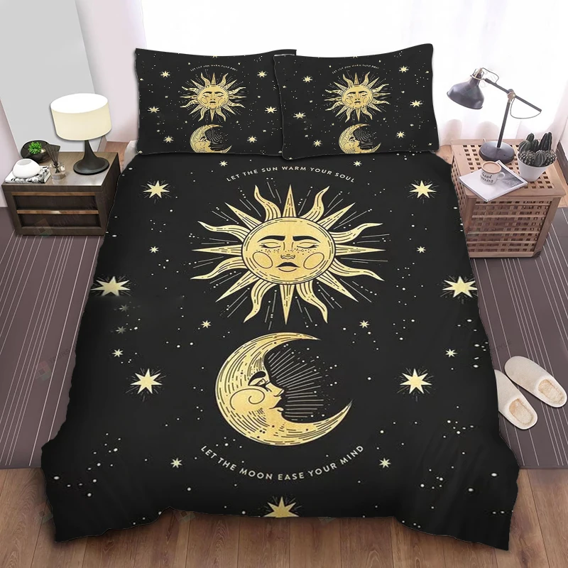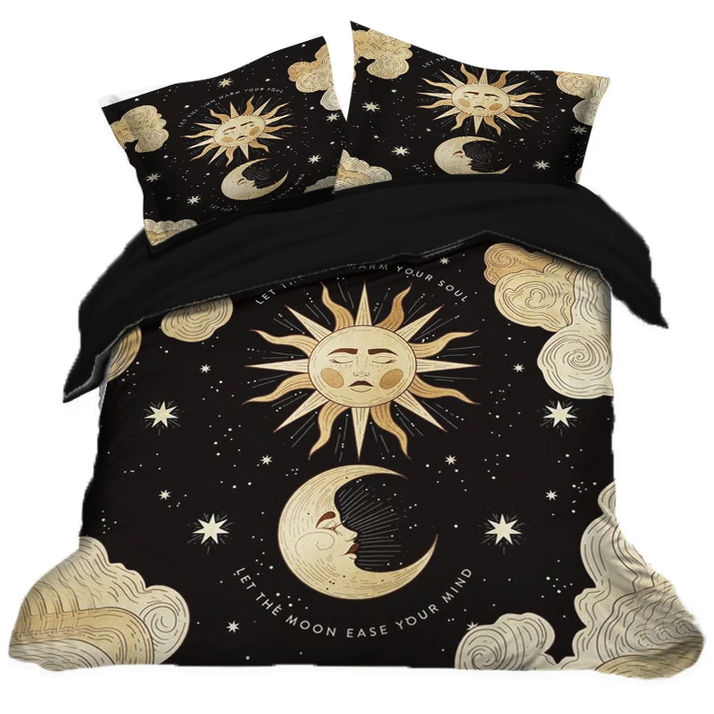 Комплект постельного белья солнце и луна, черное покрывало для кровати, двойное покрывало для кровати Королева, Галактика, покрывала в небесном стиле, 220x240, x