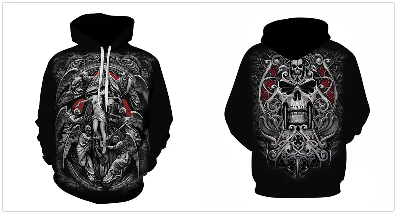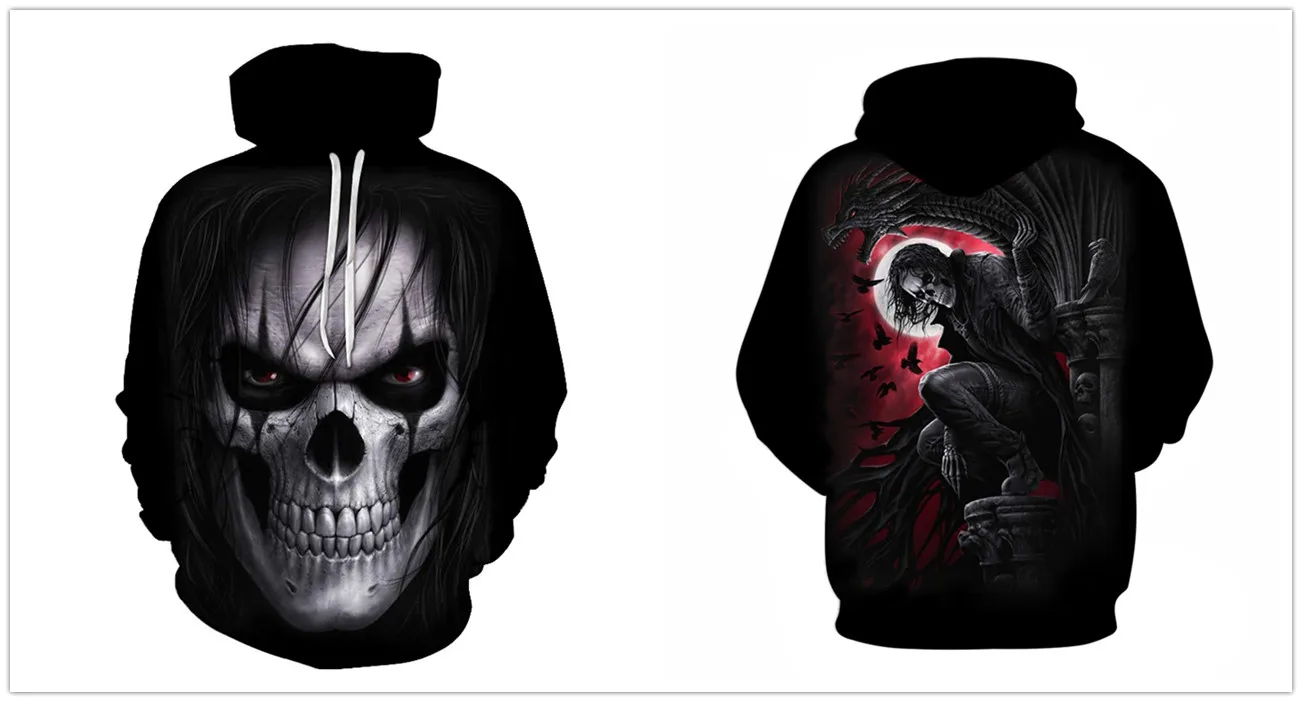 Новинка, мужские толстовки с 3D рисунком черепа, толстовка с ужасным принтом, Модный пуловер с капюшоном на осень и зиму, мужская спортивная одежда