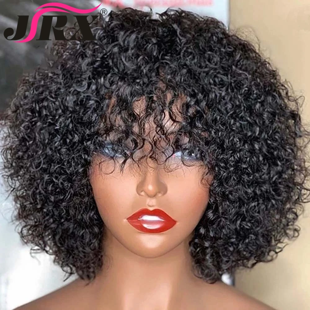 Перуанские афро кудрявые человеческие волосы парики с челкой коротк...