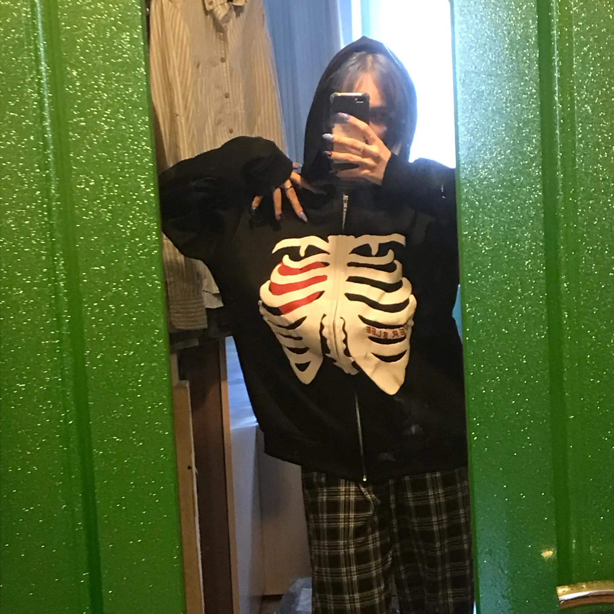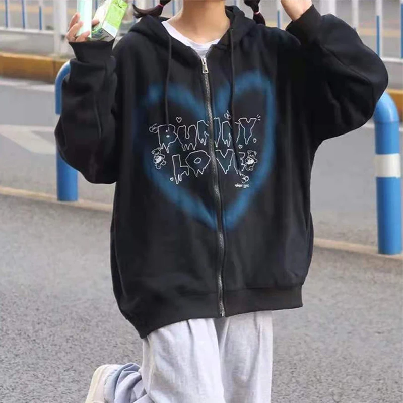 Свободная Толстовка Y2K в Корейском стиле Харадзюку на молнии с капюшоном со скелетом, куртка в готическом стиле с длинным рукавом и капюшоном, пальто в стиле ретро, свитшот большого размера