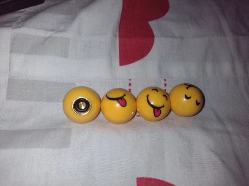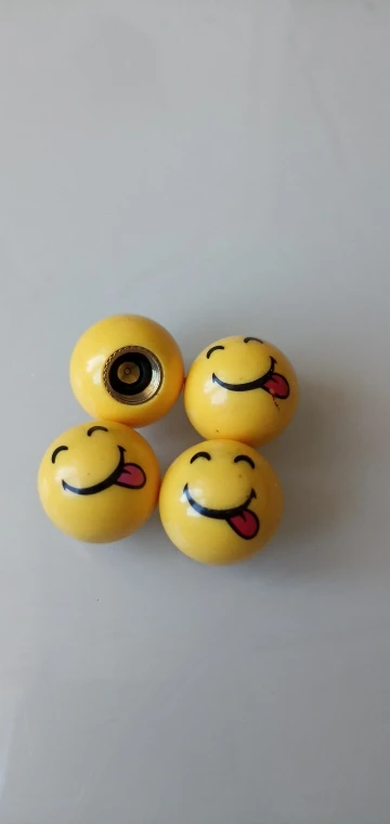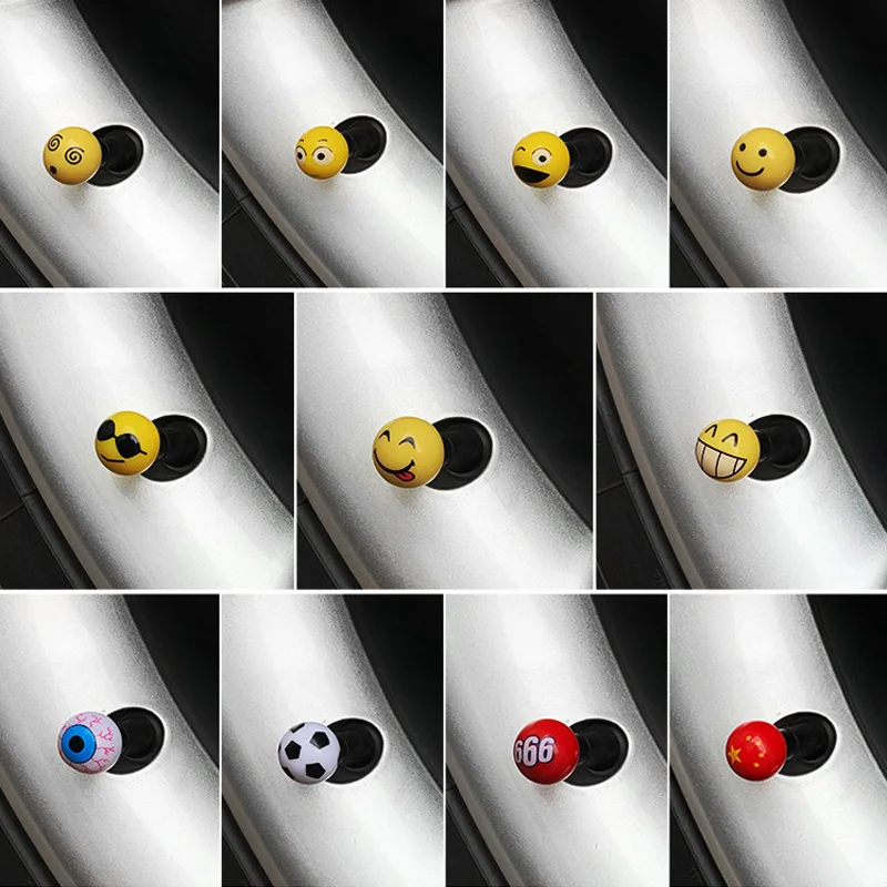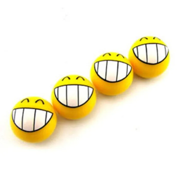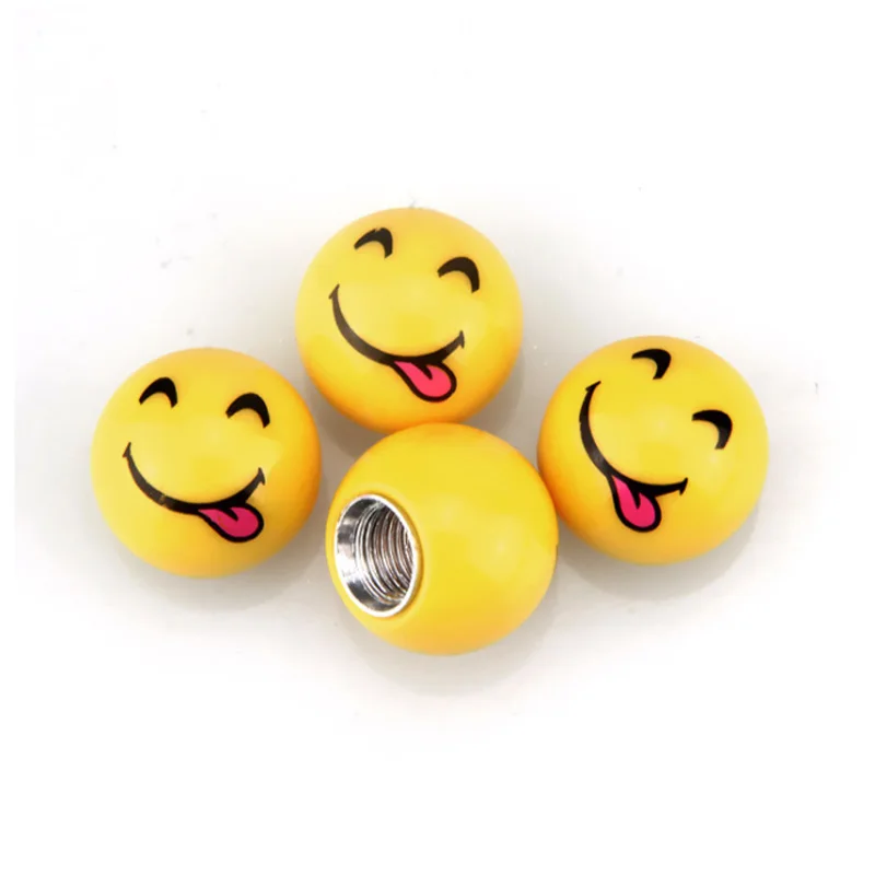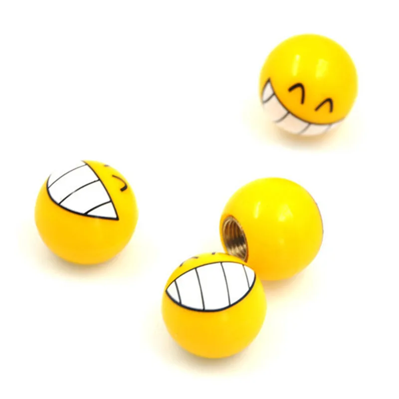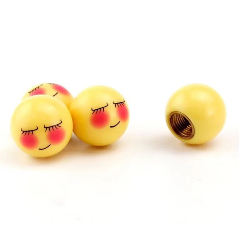 Колпачки на клапаны для автомобильных шин, 4 шт., забавные желтые шарики со смайликом, антикоррозийные медные сердечники для мотоцикла, велосипеда, пылезащитные чехлы