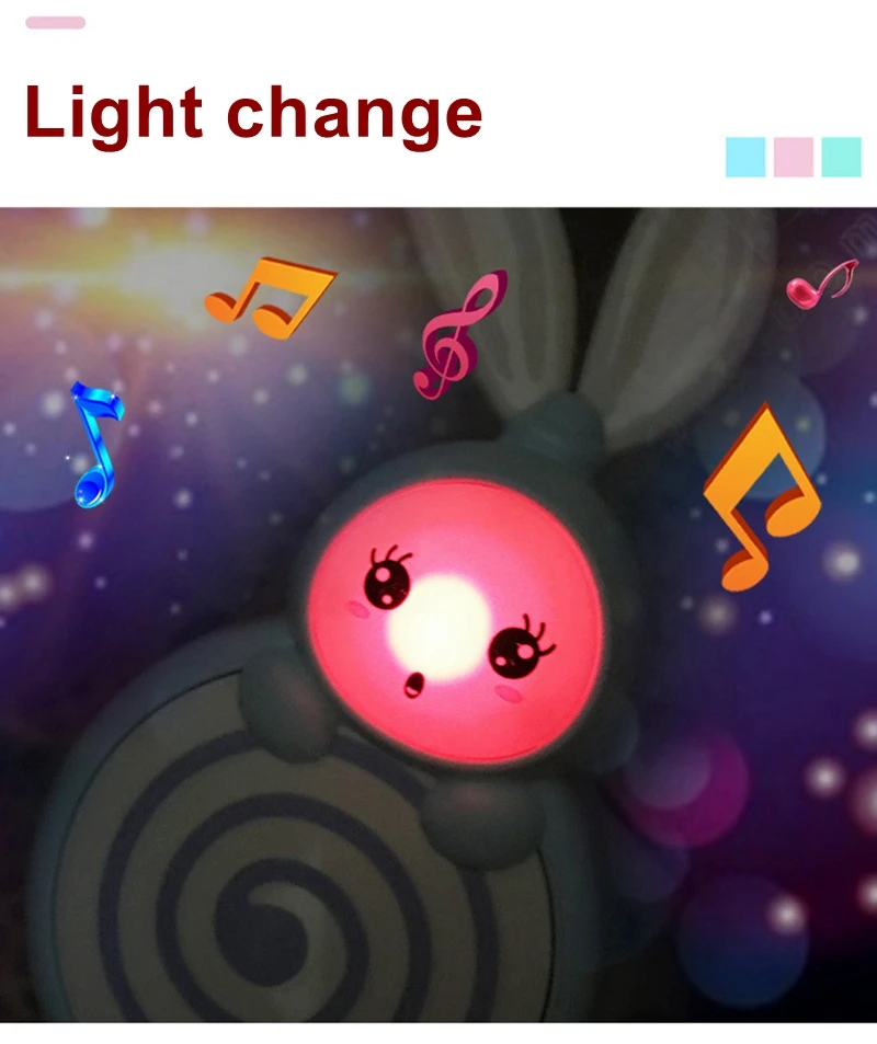 Детские музыкальные мигающие погремушки, игрушки для младенцев, милый кролик, ручные колокольчики, Ранние развивающие игрушки 0-12 м, розовыйоранжевыйзеленыйсиний