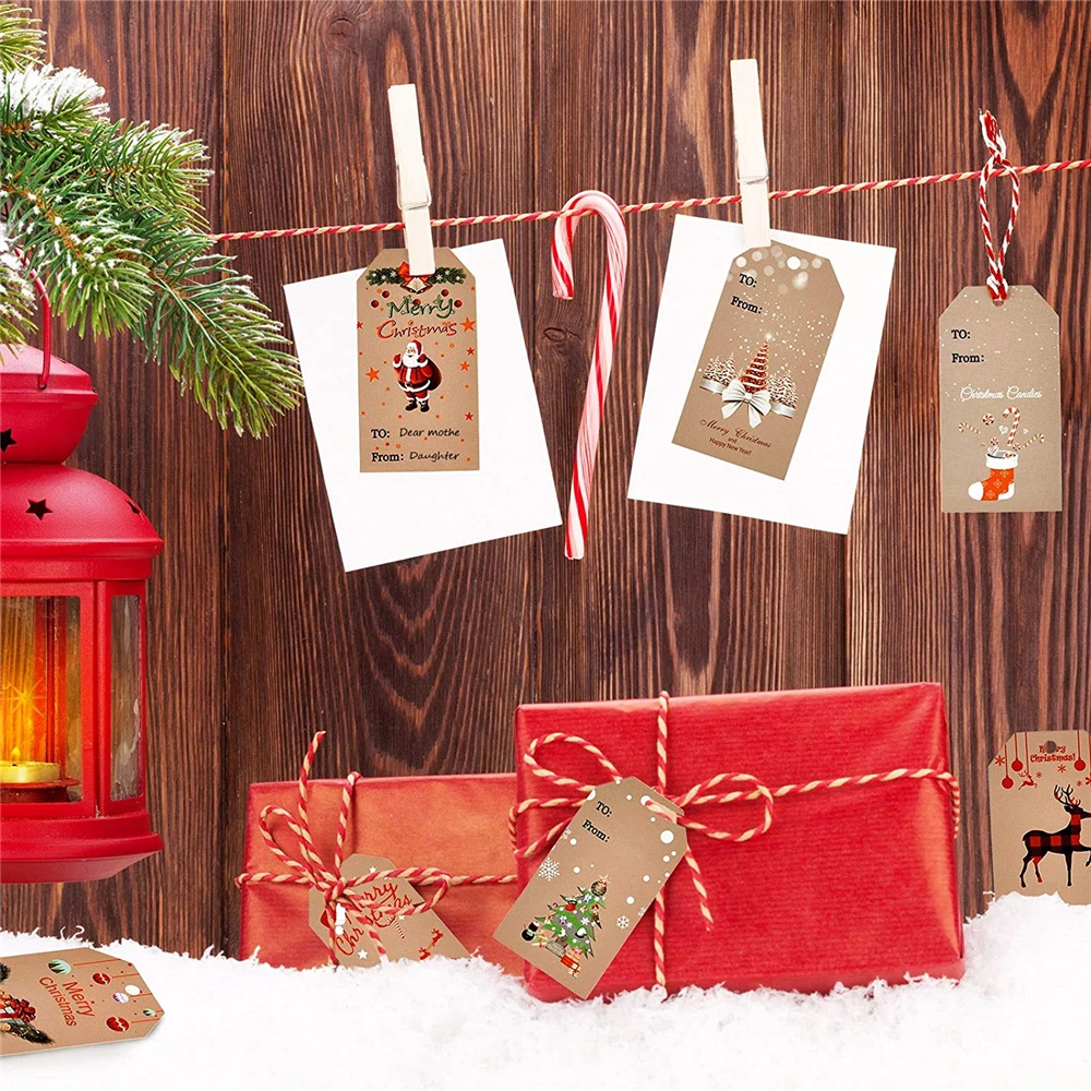 Материал: Этикетка из крафт-бумагиРазмеры: Прямоугольный она содержит совершенное иные обозначения примерно 1,2 см в ширину х 2 дюймов в высоту.Цвет: как показаноОсобенности: наши крафт-бумажные бирки для рождественских подарков добавляют праздничную атмосферу! Есть фотографии, Рождественские елки, Санта-Клаус и лося, которые раньше отмечали Рождество. Различные узоры и стили, узоры тщательно разработаны, изысканный дизайн подходит для различных случаев, подходит для письма и классического рождественского дизайна, они очень подходят для украшения хорошо завернутых подарков! Каждые 100 штук подарочных ярлыков поставляются с 20 м/65 футов натуральной экологически чистой джутовой нити, которую можно привязать к любому товару, который вы хотите маркировать.