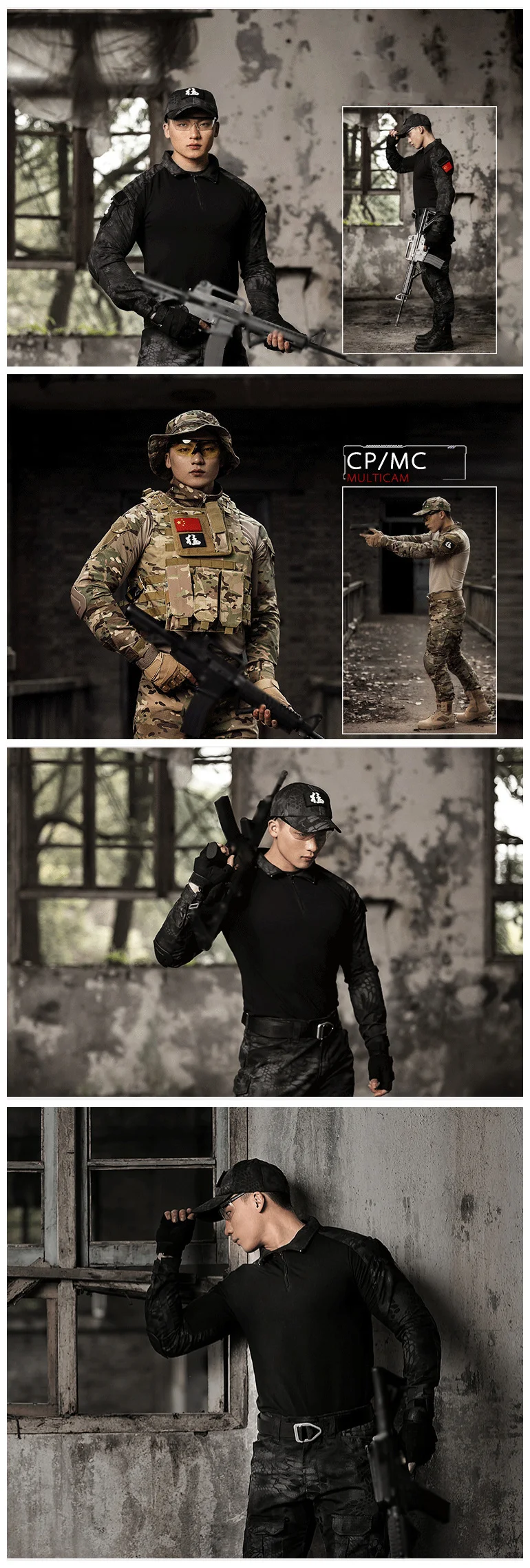 Камуфляжная тактическая рубашка мультикам, черная Военная армейская...