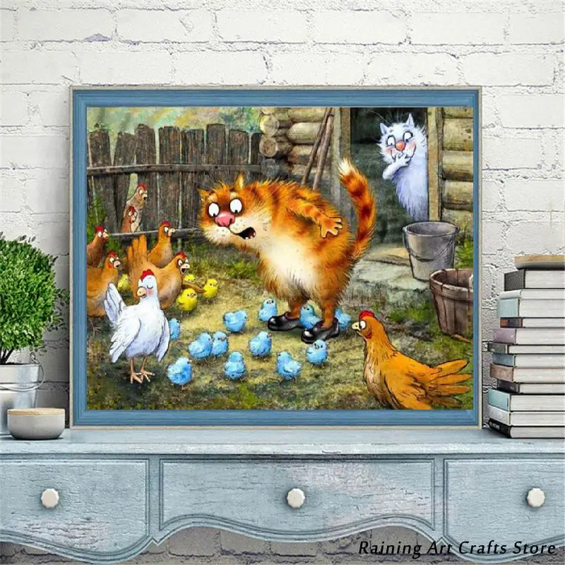 Алмазная 5D картина сделай сам с мультяшным котом и курицей, Набор для вышивки крестиком, мозаичные картины, украшение для дома, Новинка
