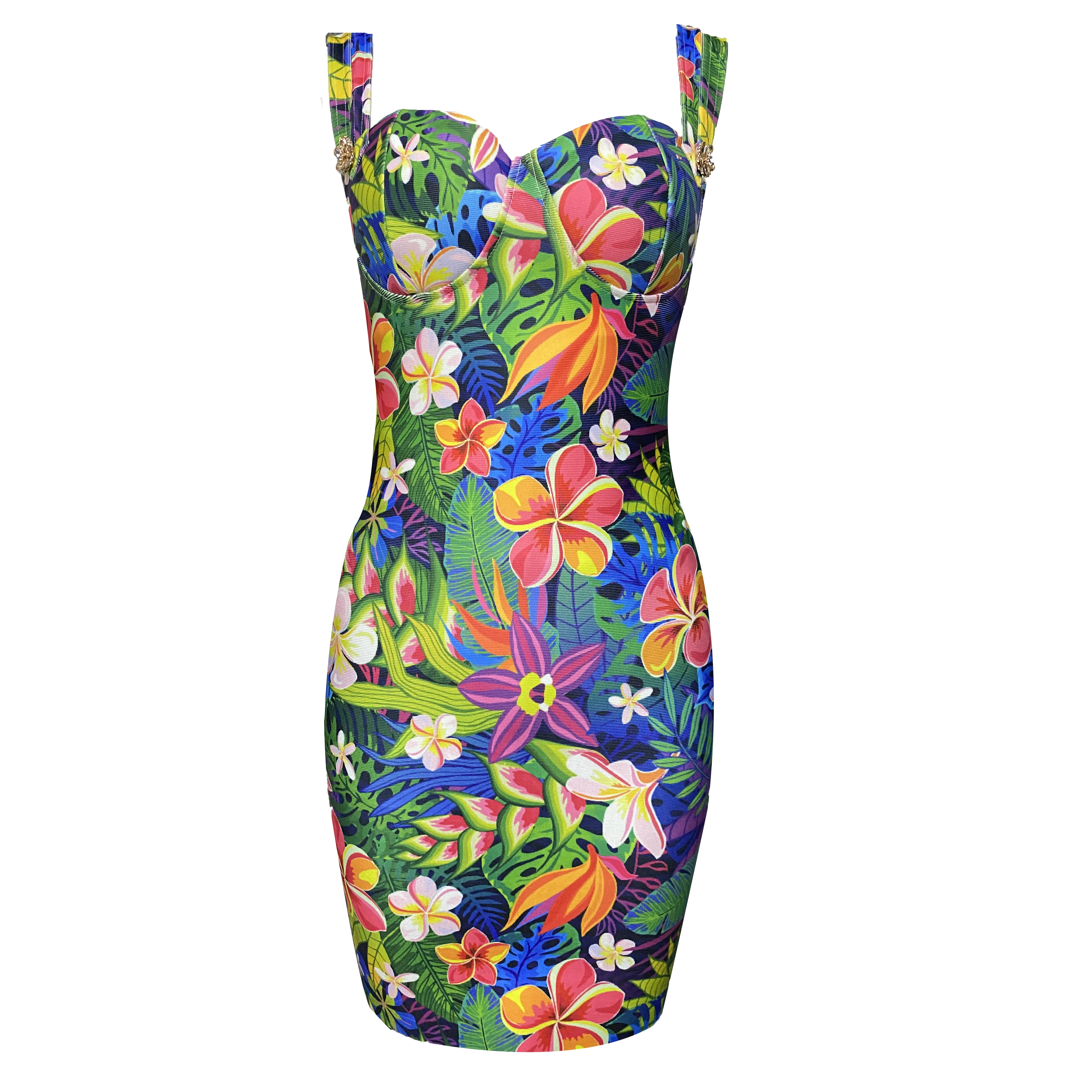 Женское Бандажное платье, новое облегающее Привлекательное платье с принтом на бретелях-спагетти, элегантные летние вечерние осенние платья, одежда, 2021