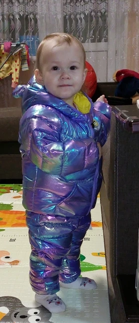 Полукомбинезон оправдал ожидания, на российскую зиму только если тёплую, на весну-осень вполне хорош. Пришёл за 11 дней в Ижевск. У другого продавца заказали в комплект куртку. На фото дочка около 80см (1г 4мес), на комбезе маркировка 90. Есть запасик. Продавца и товар рекомендую.