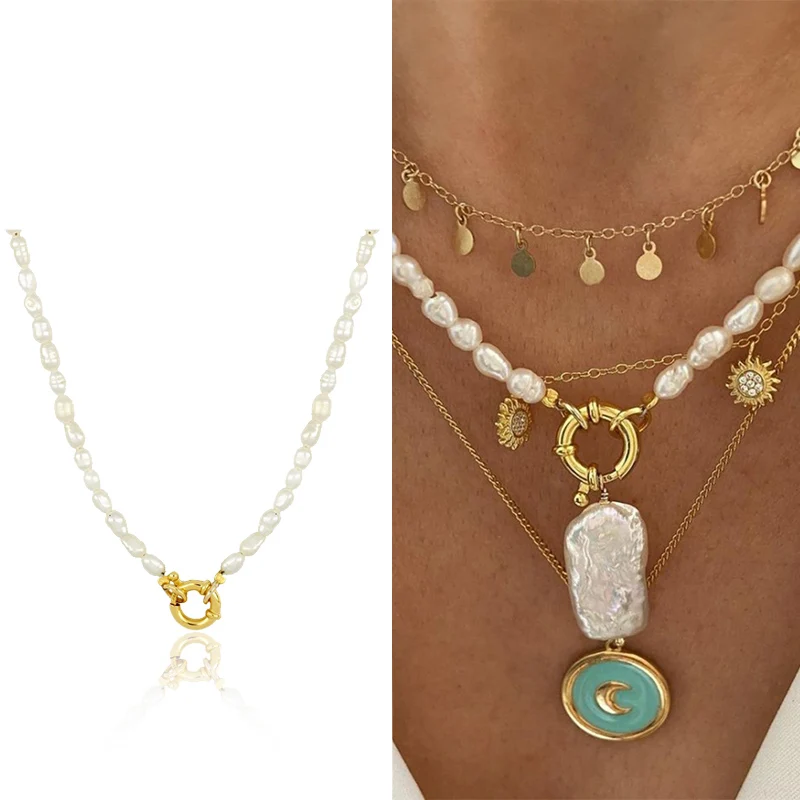 Женское Ожерелье с натуральным жемчугом, из нержавеющей стали