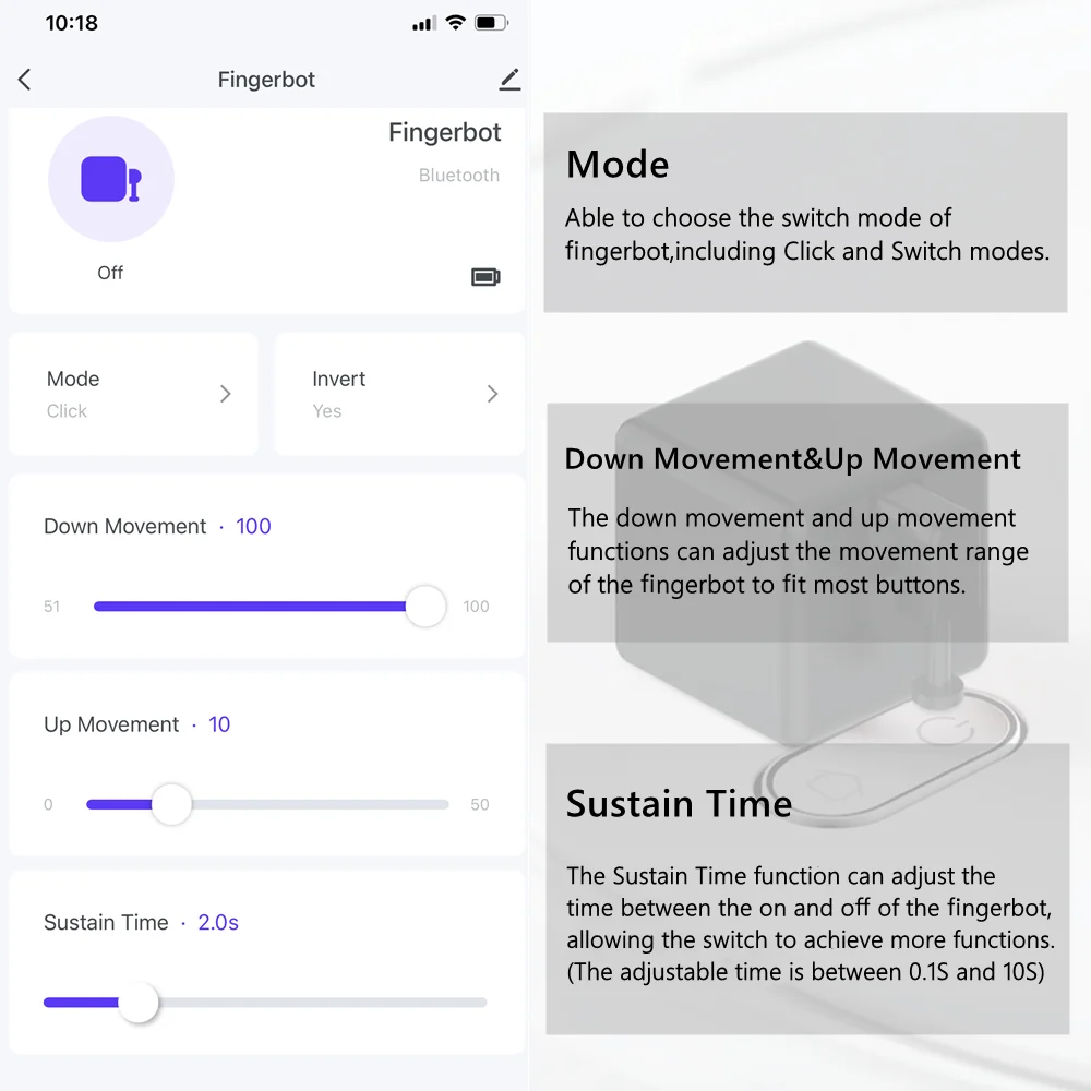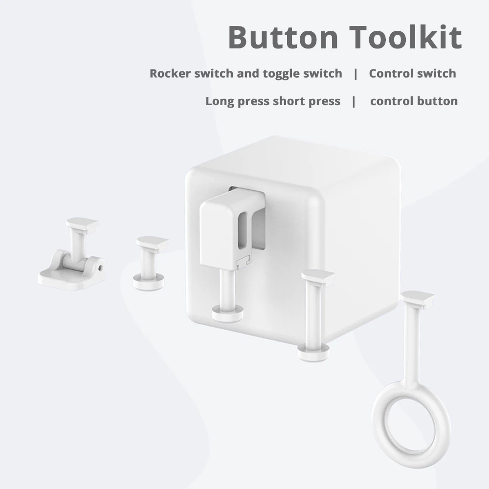 Есть набор инструментов Fingerbot на ваш выбор, вы можете изменить подходящий тип для управления кнопками. Он поставляется с механическими ручками различной длины и формы.