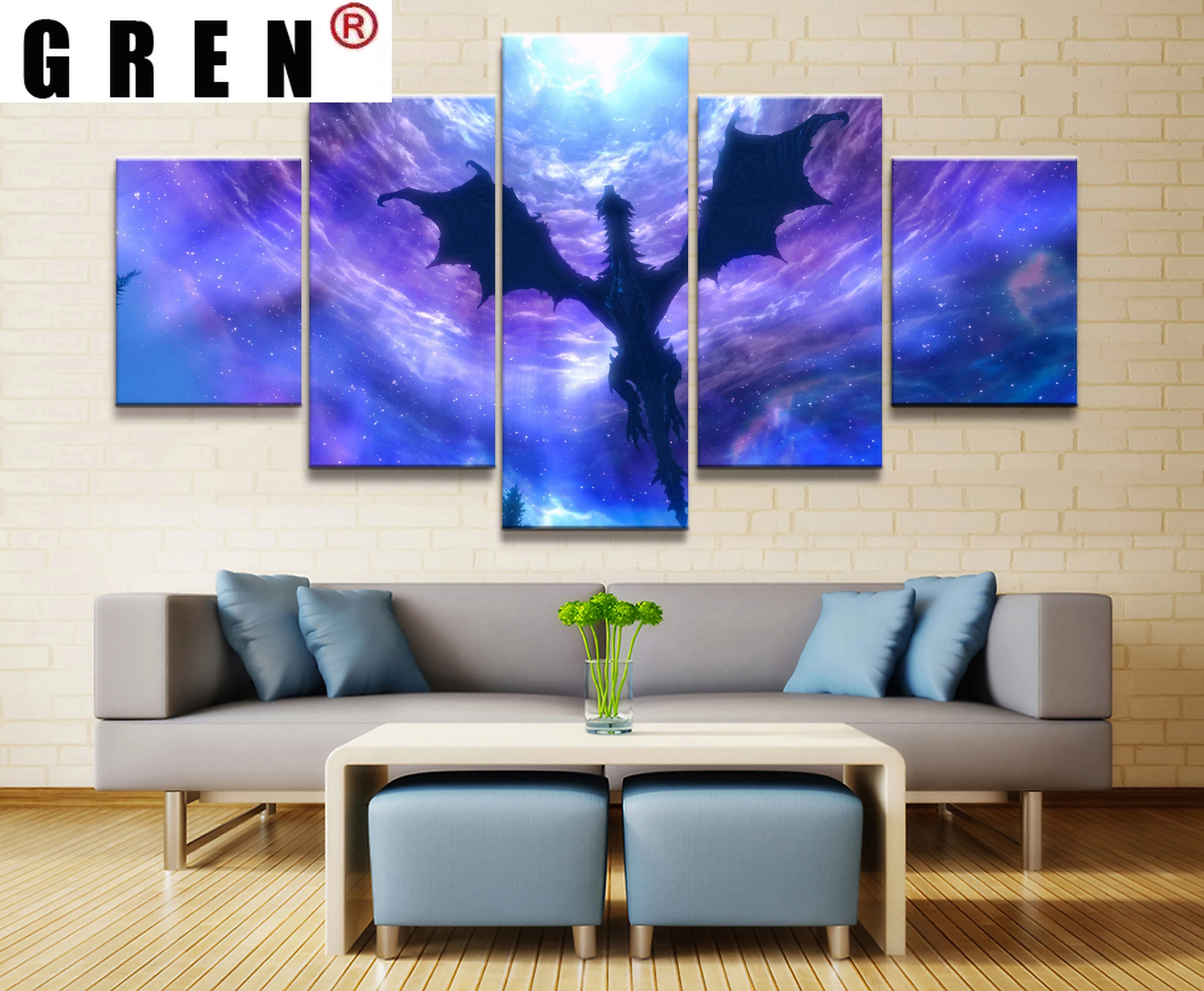 Модульная Картина на холсте GREN, 5 шт., картина с изображением старших свитки, Скайрима, Настенная картина для дома, домашний декор