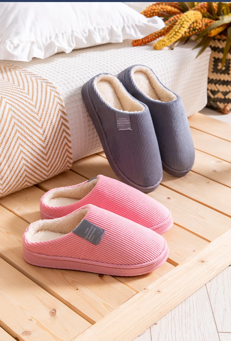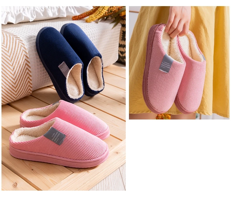 Женские хлопковые тапочки; Сезон осень-зима; Домашняя обувь на нескользящей мягкой подошве; Теплая обувь; Простые Плюшевые сандалии для спальни