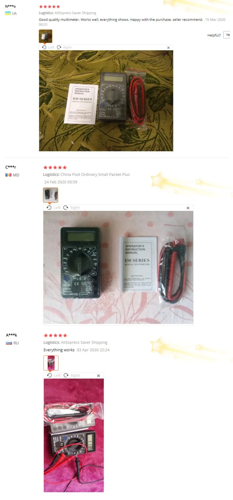 Посылка тация:1 x Цифровой мультиметр2 ручки для тестовых проводов1 х Руководство пользователя
