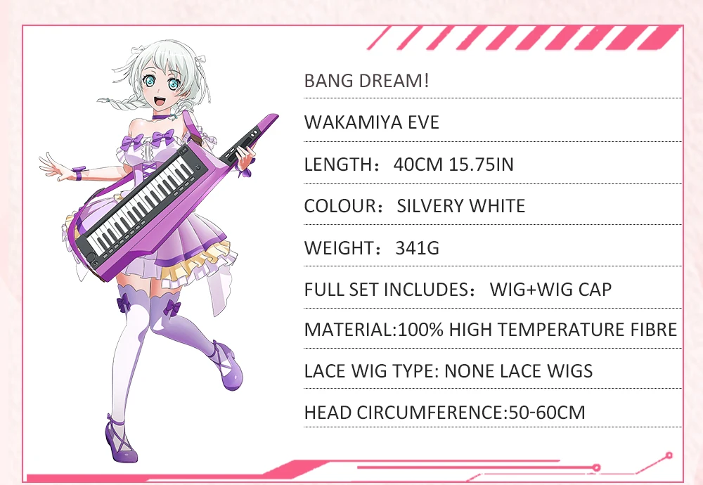 Wakamiya ЕВА парик челка мечта! Пастельные палитры париков для косплея синтетический женский белый Bandori косплей Ева вакамия