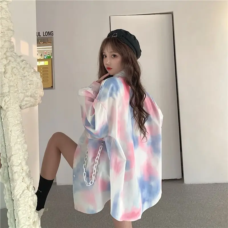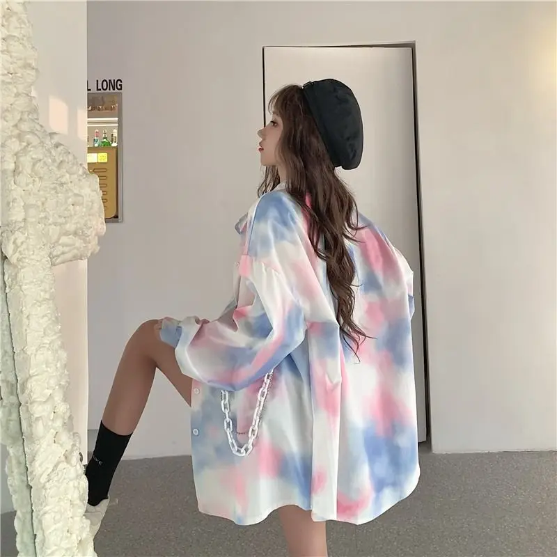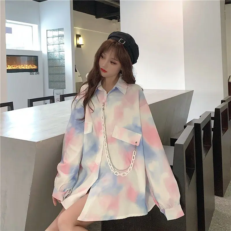 Осенние блузки, повседневные рубашки для женщин, свободный уличный Топ с длинным рукавом и цепочкой в Корейском стиле