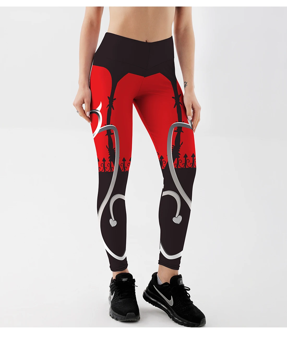 Женские черные леггинсы с принтом раненного сердца, тренировочные ш...