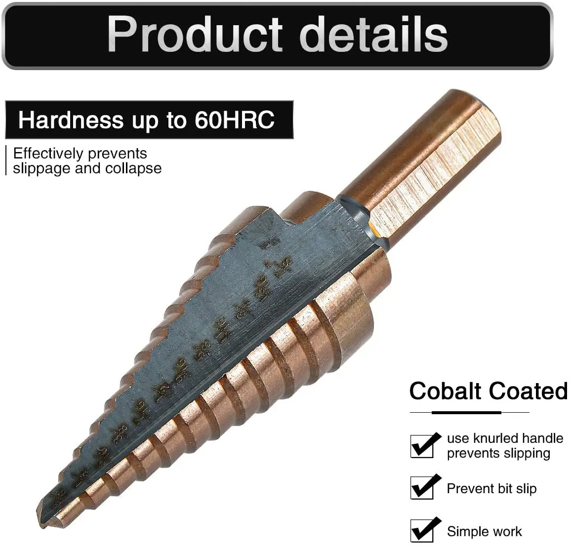 Популярный товар, ступенчатое сверло из быстрорежущей стали 4241 с титановым покрытием, высокоскоростное стальное сверло, коническое сверло, ступенчатое сверло с дополнительным алюминиевым корпусом