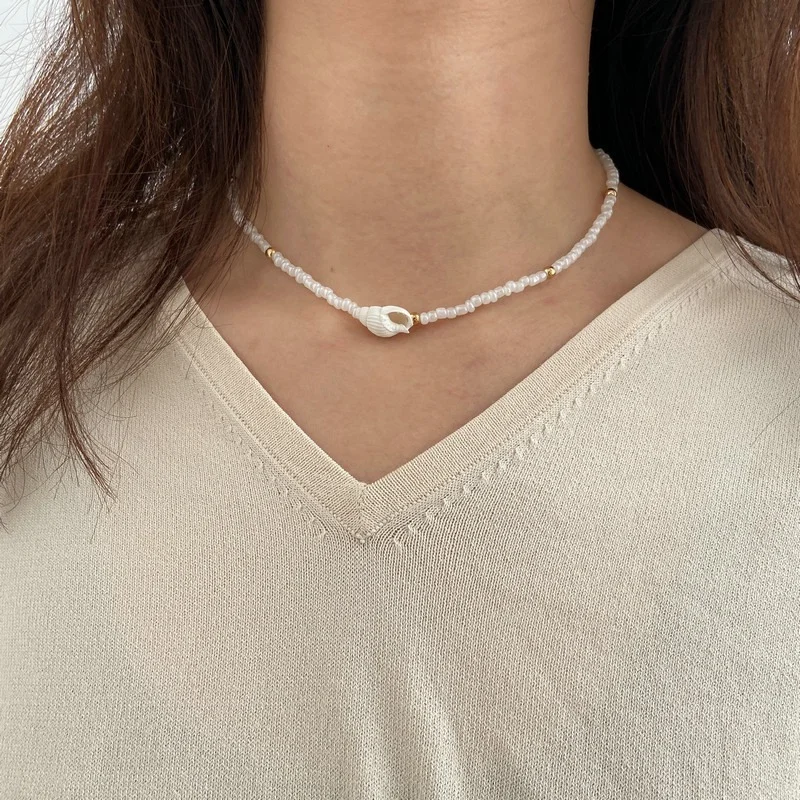 Женское Ожерелье 2021, золотые ювелирные украшения, готический богемный стиль, цветные бусины, белые бусины, ракушки, цепочка до ключиц, корейский модный воротник, joyero