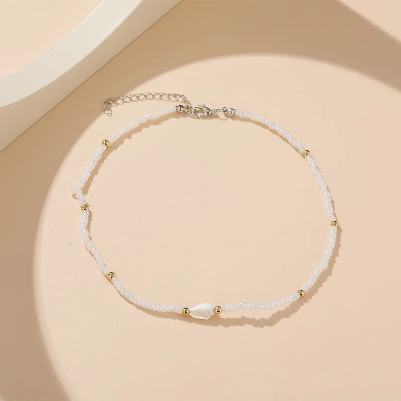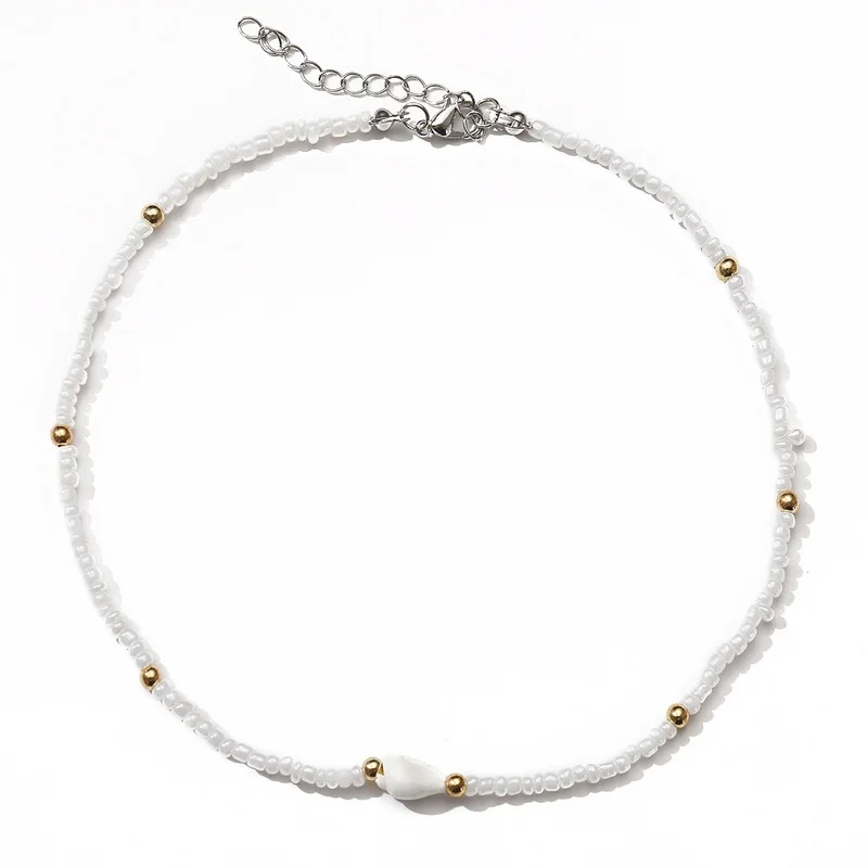 Ожерелье-чокер с белыми бусинами в богемном стиле, эффектное коротк...