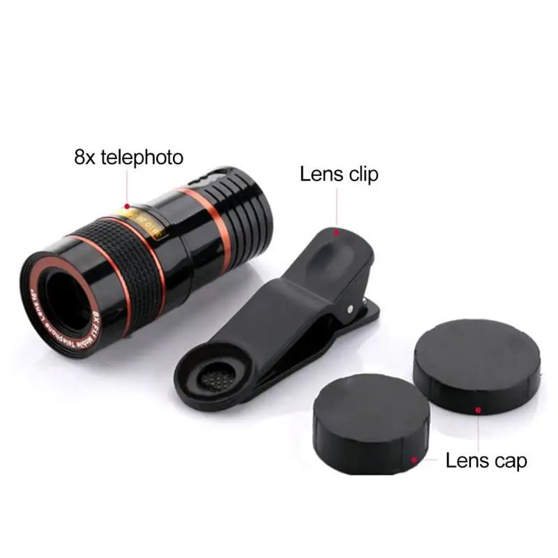 Объектив для телефона с клипсой 12x, оптический зум, HD телефото камера, макрообъектив, комплект для универсального телескопа, телескопа
