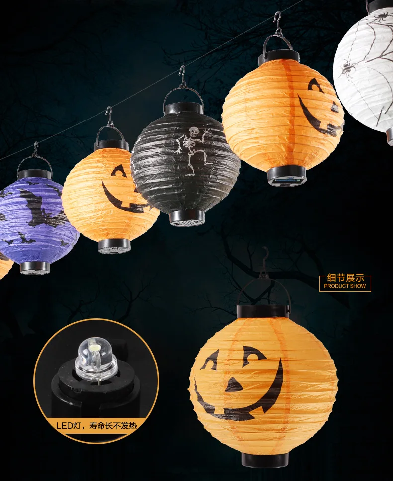 Светодиодный круглый бумажный фонарь, Хэллоуин, Подвесная лампа лет...