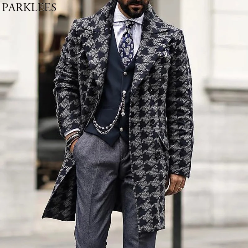 Мужское пальто средней длины, модное пальто с принтом и воротником,...