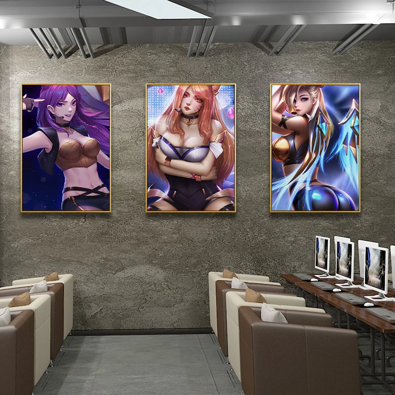 Картины Лига Легенд, Интернет-кафе, Интернет-кафе, LOL Kasha Ari KDA, декоративная картина, Постер для комнаты, настенная живопись