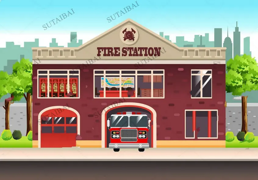 Пожарная станция фотография фоны пожарный грузовик Фотофон торт разбивание фото студия фотосессия