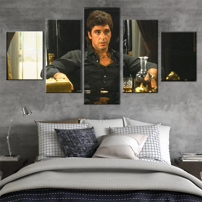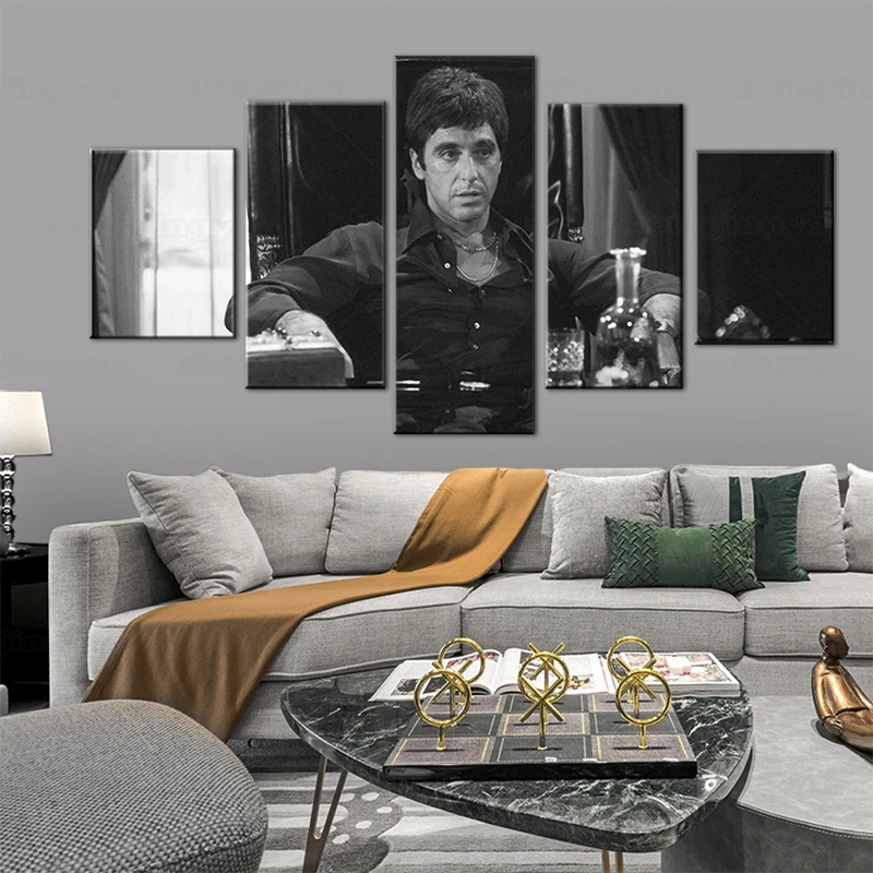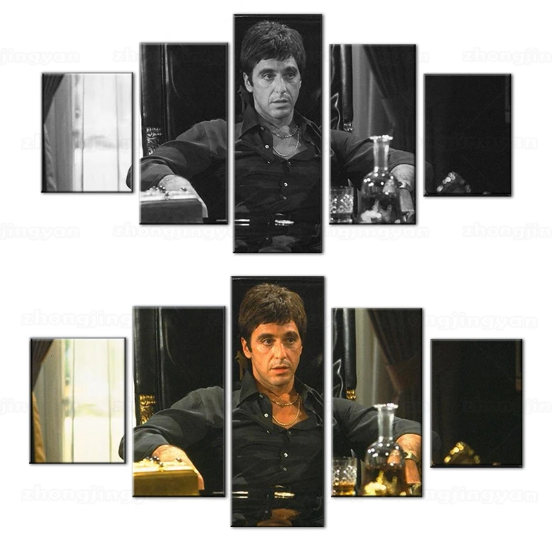 Черно-белый Al Pacino Scarface в рамке 5 шт. кино холст настенная живопись обои Плакат Картина декор для фото