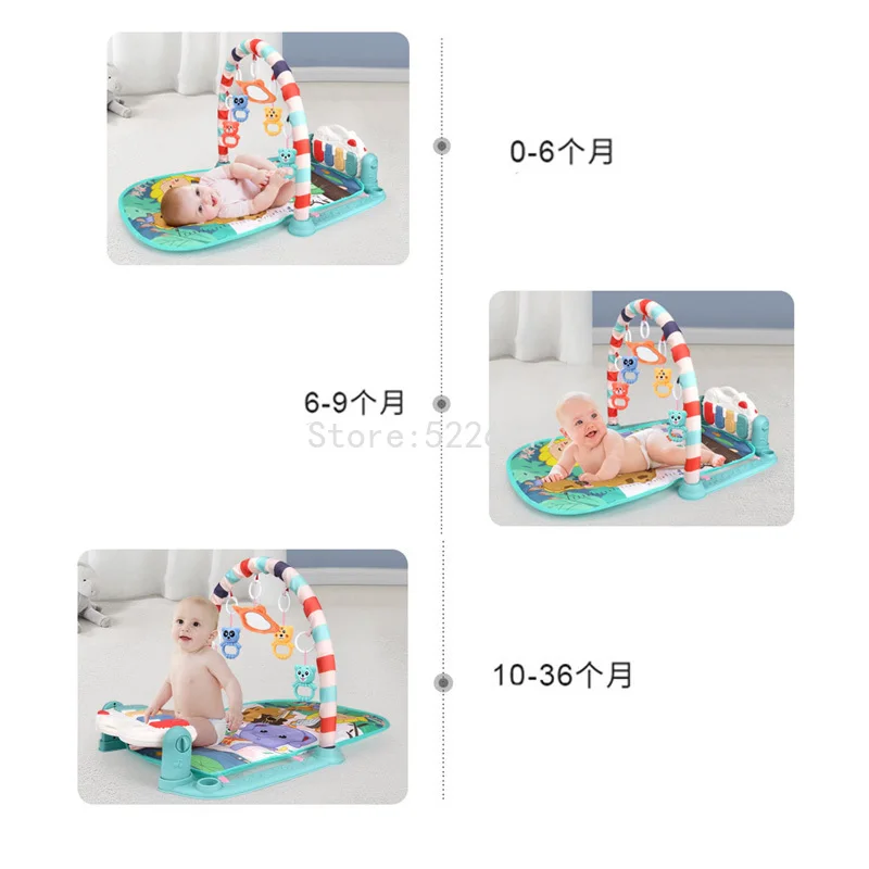 -Милый стиль с героями мультфильмов, яркий цвет, синий и красный цвета. -Мягкий коврик, съемный и можно стирать отдельно, длина коврика 70 см -Милый кулон для животного, ребенок может прилегать и захватывать его, или удалить его в качестве погремушки. -395 Колыбельная, 16 звуковых эффектов -Существует два способа установки пианино. Ребенок может лежать или сидеть, чтобы играть.