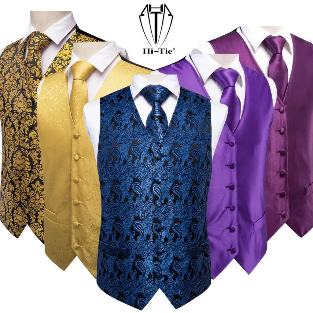 Hi-Tie бренд шелковый мужской s жилет Красный Синий Зеленый Золотой...