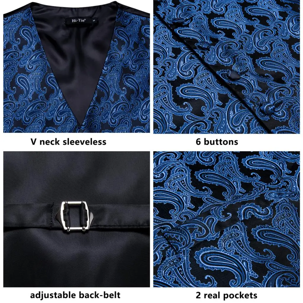 Привет-галстук Шелковый мужской костюм жилет Пейсли Цветочный синий...