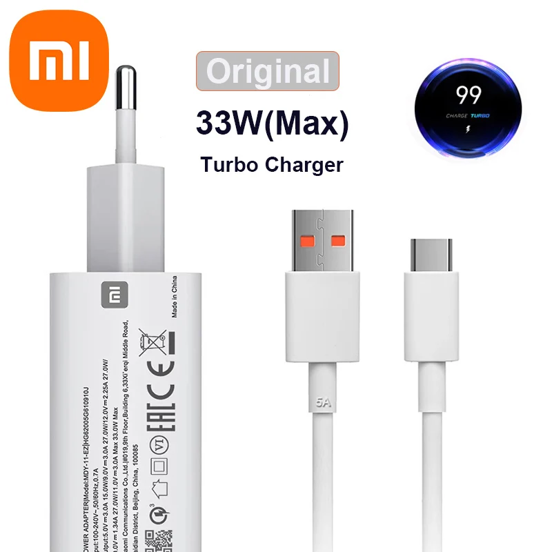 Зарядное устройство 33 Вт для xiaomi с европейской турбозарядкой, оригинальный кабель type-C для Xiaomi redmi note 9 pro, POCO X3, nfc, Mi 10, 9, 9t pro, note 10, 10X LITE
