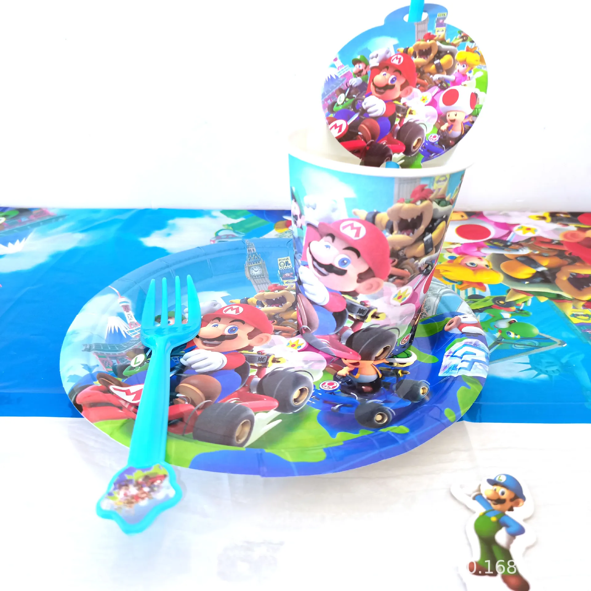 Праздничные тематические украшения в виде Марио, баннер, флаг, декор для детского праздника, одноразовая столовая посуда, рождественский подарок