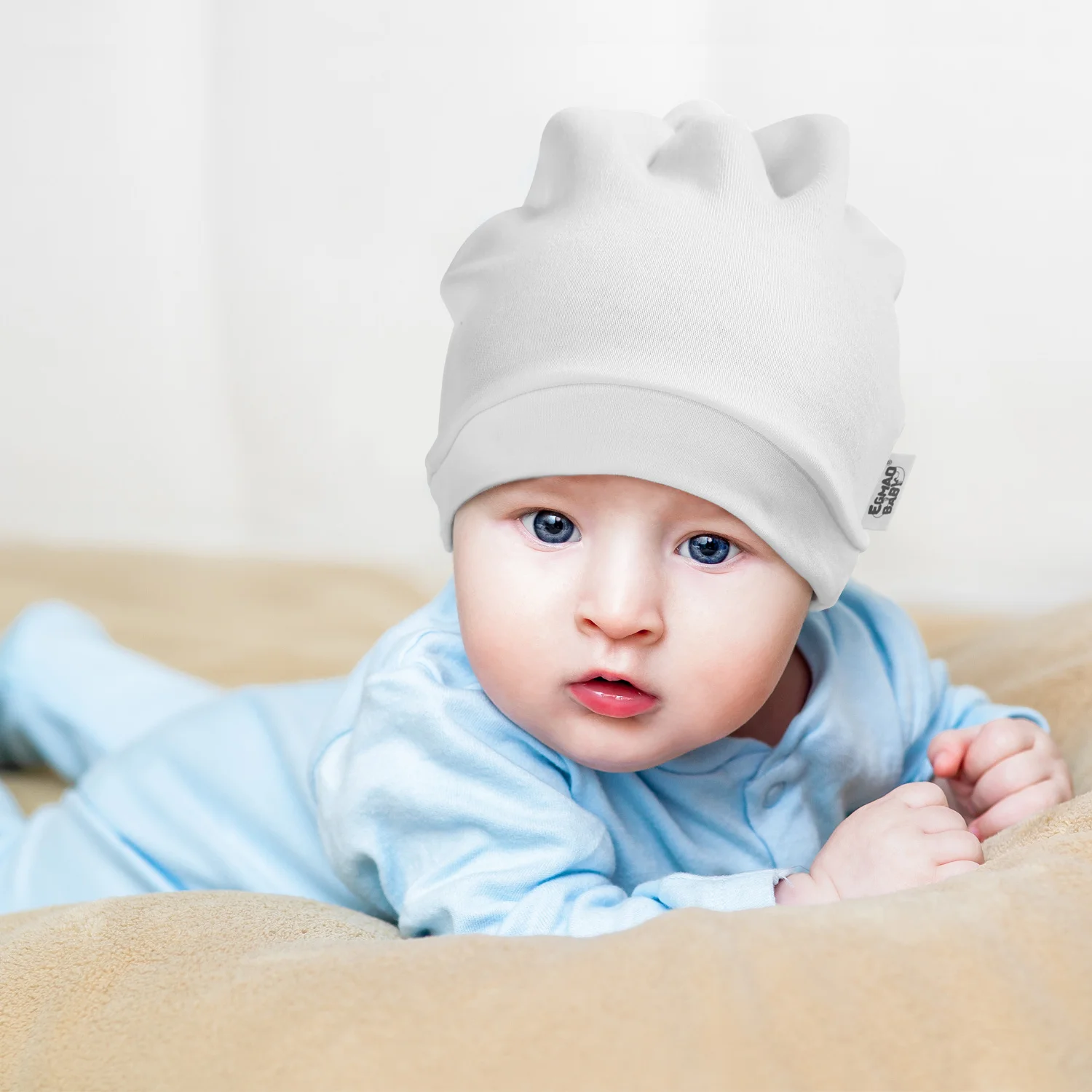 Дизайн: специальный дизайн с регулируемым узлом, который может затянуть или ослабить по мере необходимости, обеспечивая удобную шляпу для новорожденных. При необходимости наши детские шапки для девочек и мальчиков могут работать в качестве головной убор для новорожденных, когда узел затягивается. Прочная конструкция легко соединяется с