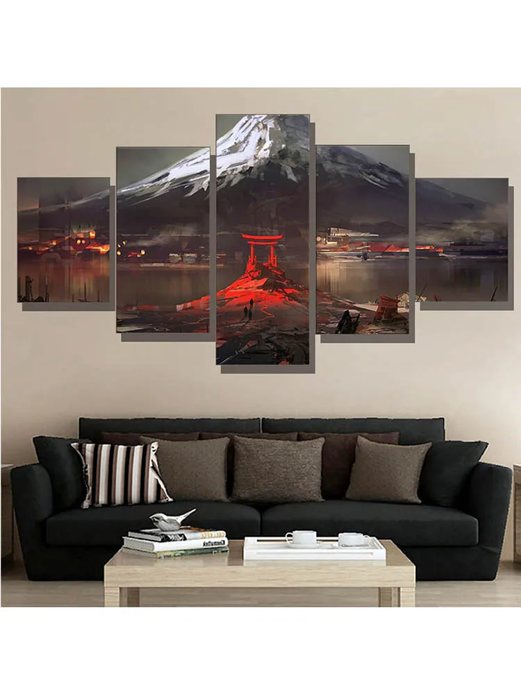 5 панелей/шт абстрактное искусство холст картина крепление Fuji Япония Рисование художественное оформление картинки для гостиной домашний Настенный декор без рамки