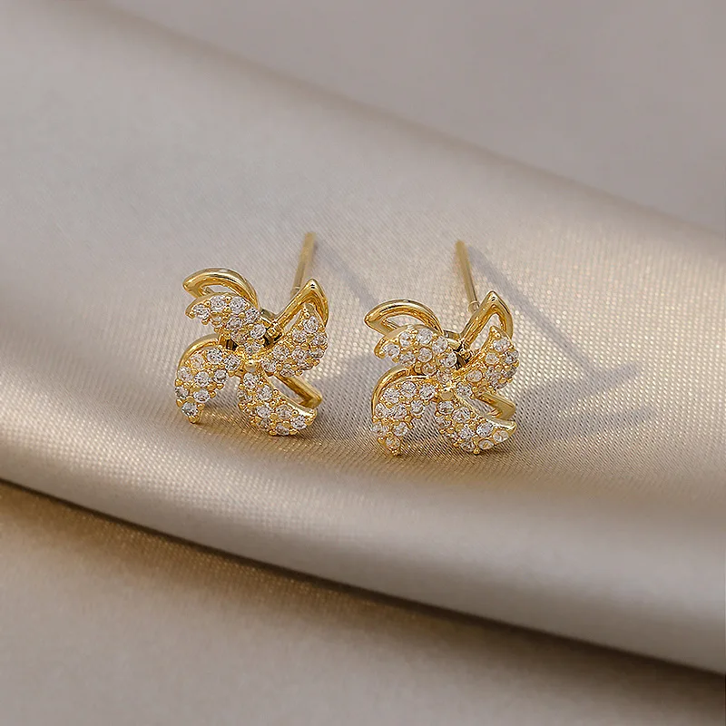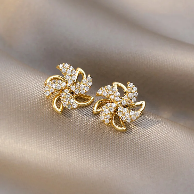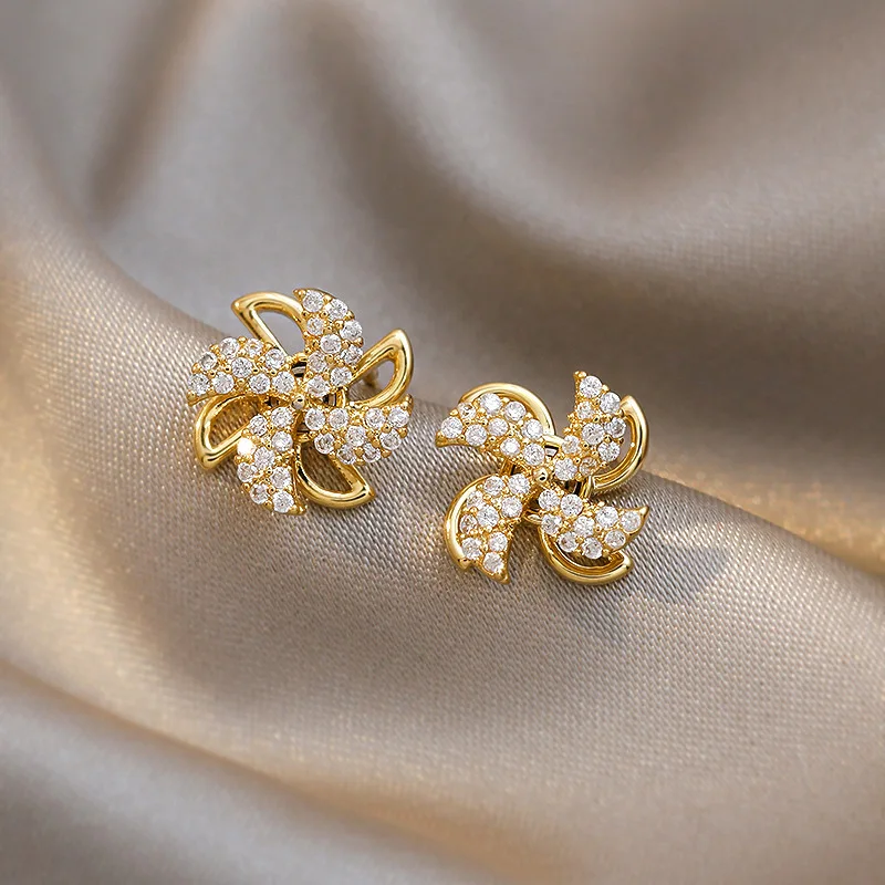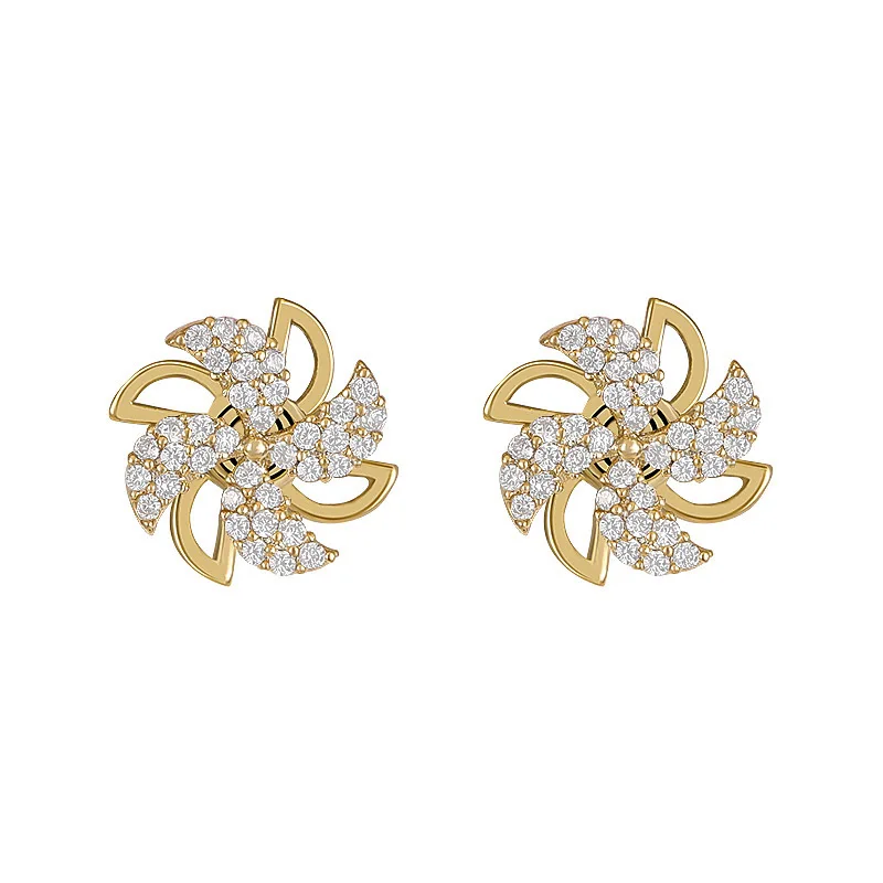 Серьги женские в виде ветряной мельницы, с золотым цирконом, Необыч...
