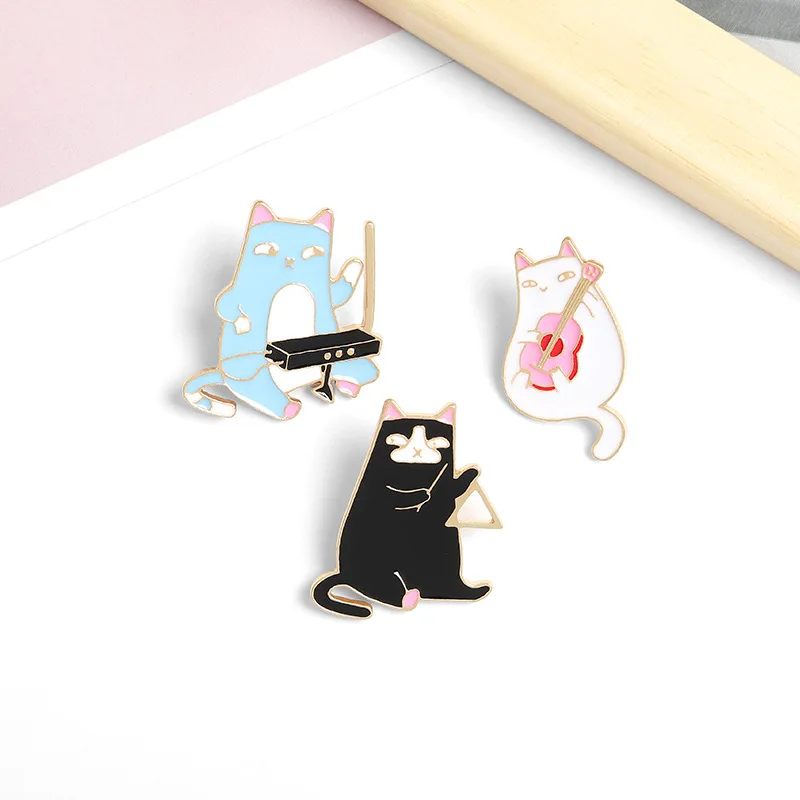 Креативные забавные броши в виде кота для игр на гитаре и кота для музыкального инструмента Аксессуары для сумки