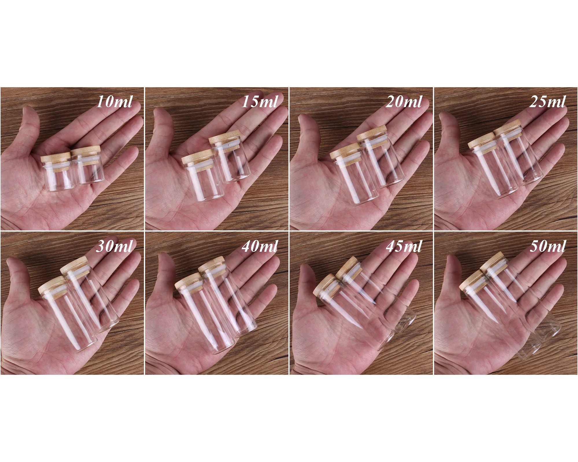 Стеклянные бутылки диаметром 30 мм, 10-50 мл, 5 шт., стеклянные банки с бамбуковыми крышками, флаконы для зелья, банки для специй бутылки желаний, для художественного творчества