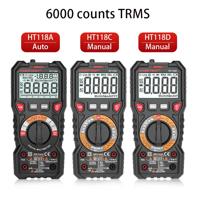 Профессиональный цифровой мультиметр HABOTEST HT118, вольтметр, автомобильный тестер, 1000 В, 10 А переменного тока, цифровой тестер транзисторов