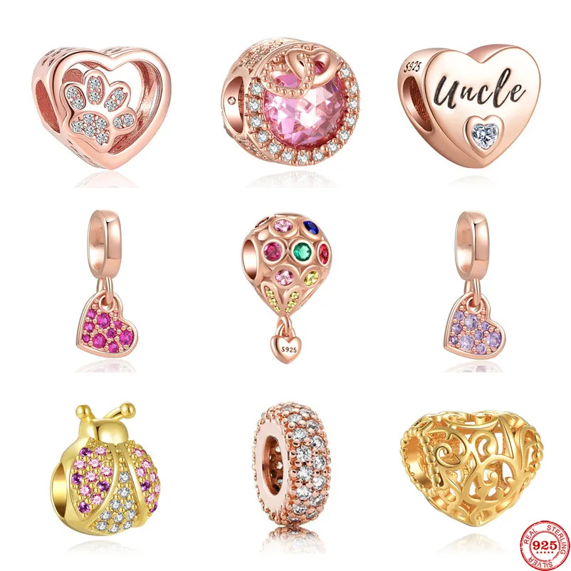 Новые европейские Diy Розовые золотые собачьи лапы крест сердце шарики бусины подходят к оригинальным шармам Pandora Серебро 925 браслет аксессуары для женщин