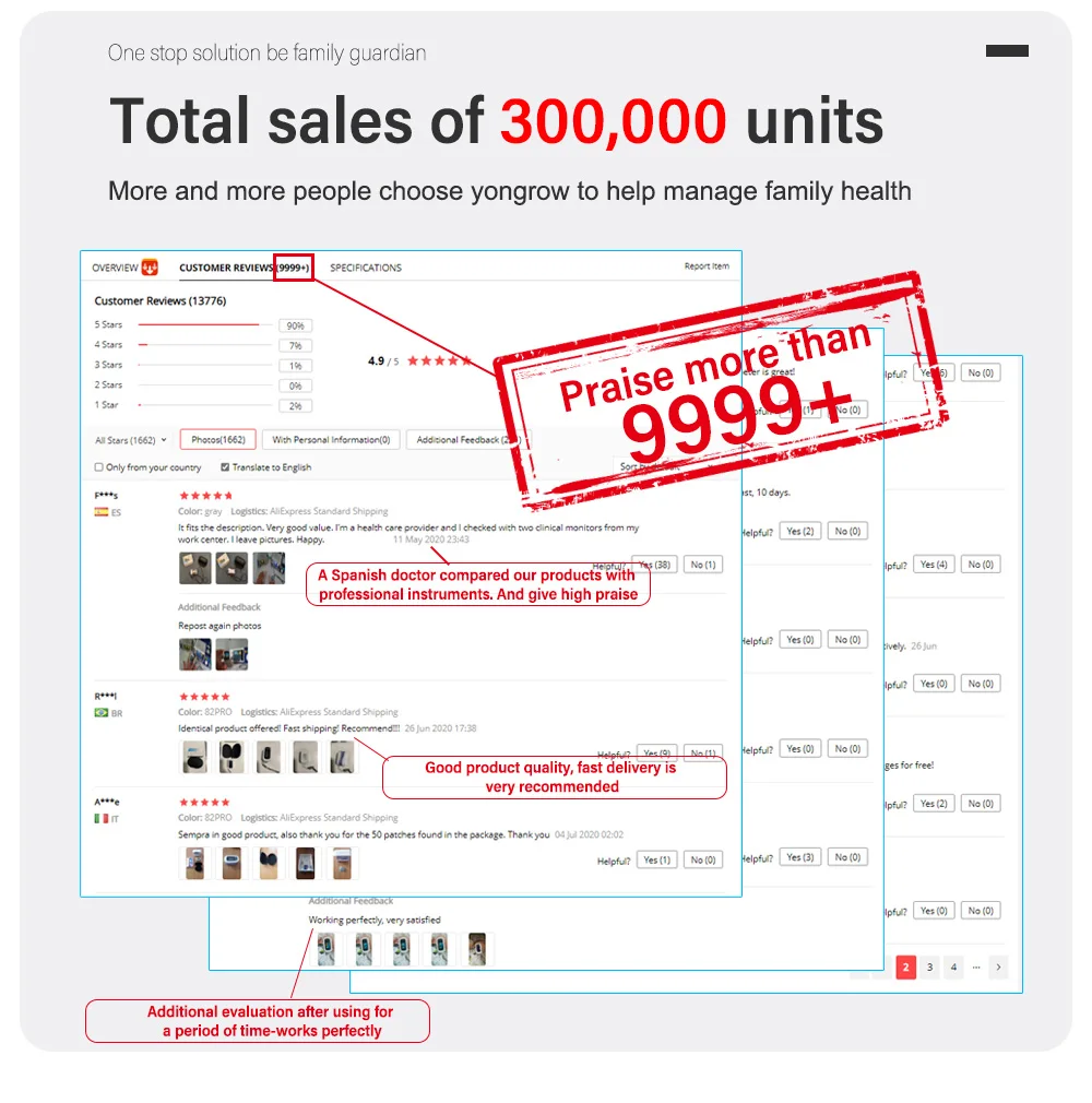 Этот продукт имеет распродано Более 300000 единиц. Он очень популярен во всем мире. Все больше и больше людей выбирают нас, чтобы помочь управлять здоровьем семьи