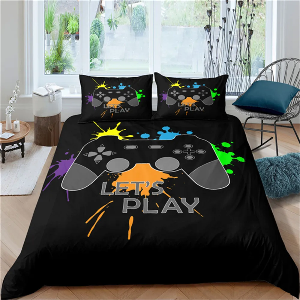 Набор постельного белья с мультяшным принтом для геймпада, креативный игровой комплект с пододеяльником и наволочкой, домашняя односпальная и двуспальная кровать для подростков и детей