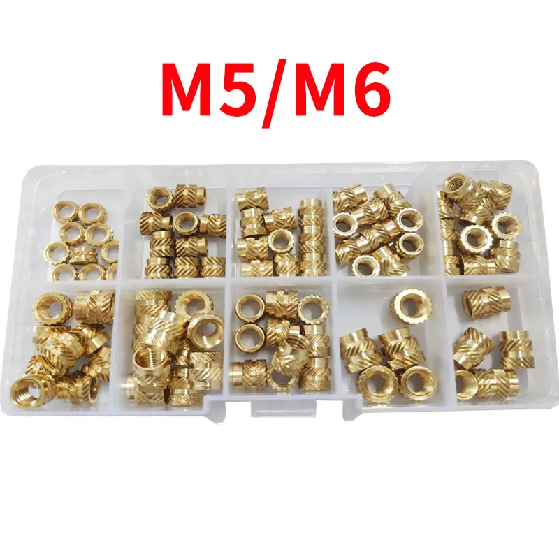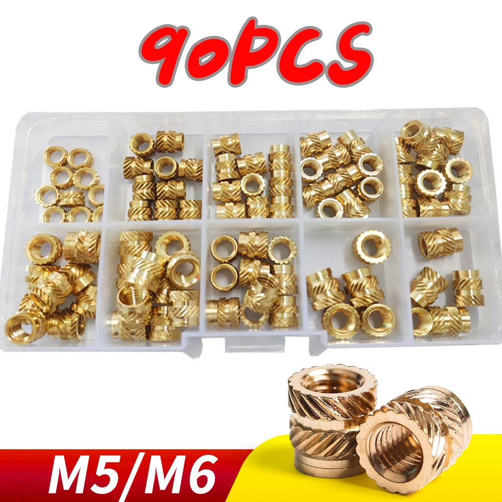Набор встраиваемых латунных гаек M5 M6, 90 шт., резьба медные, с накаткой, набор встраиваемых гаек с резьбой