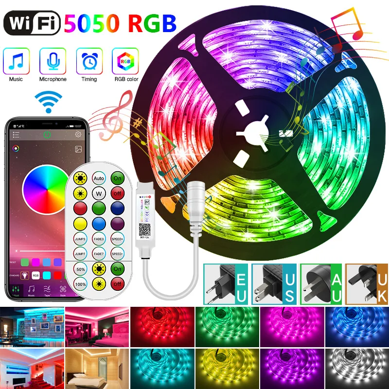 WIFI СВЕТОДИОДНАЯ лента SMD 2835/5050 RGB светодиодный светильник с пультом дистанционного управления + источник питания